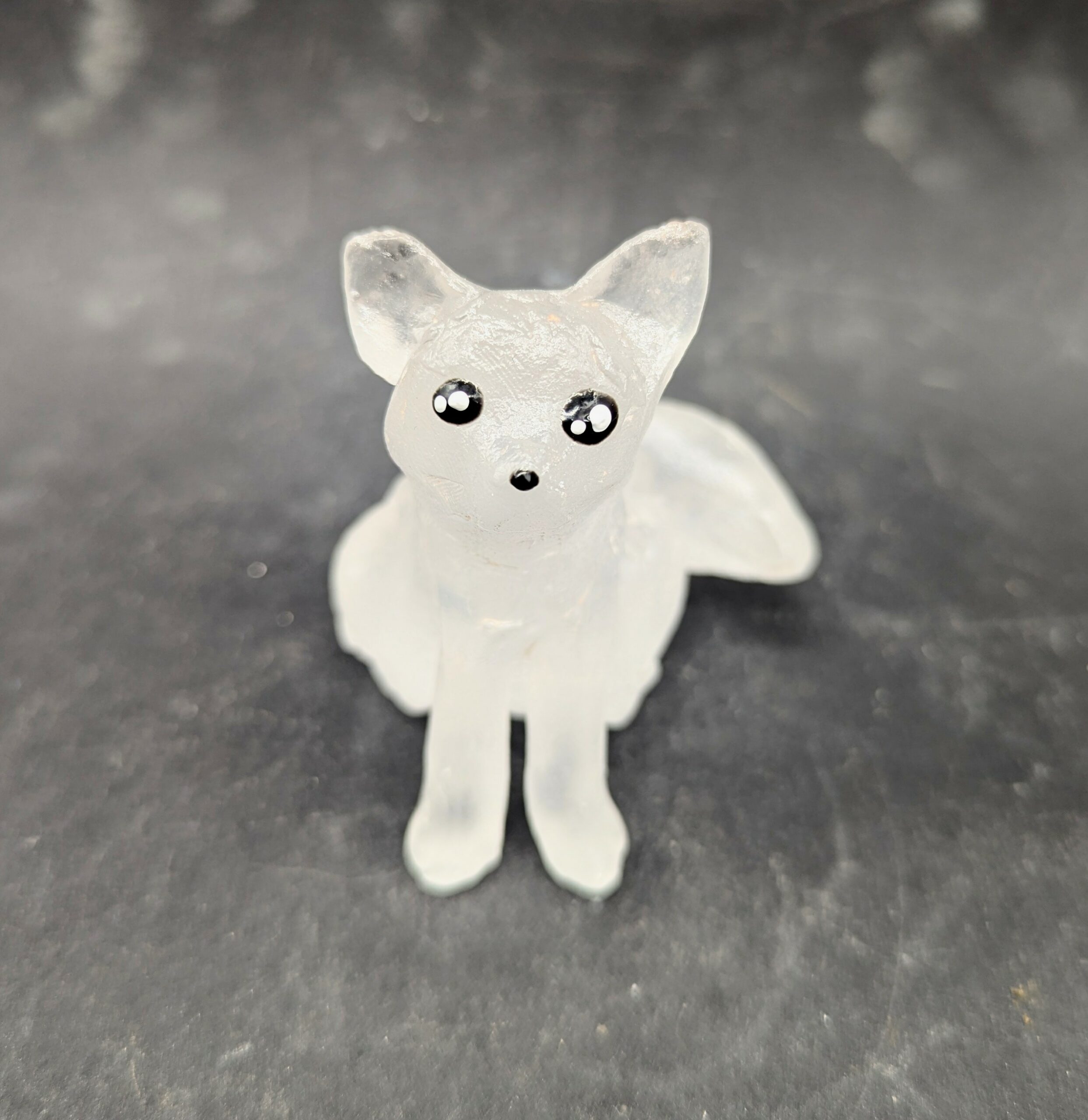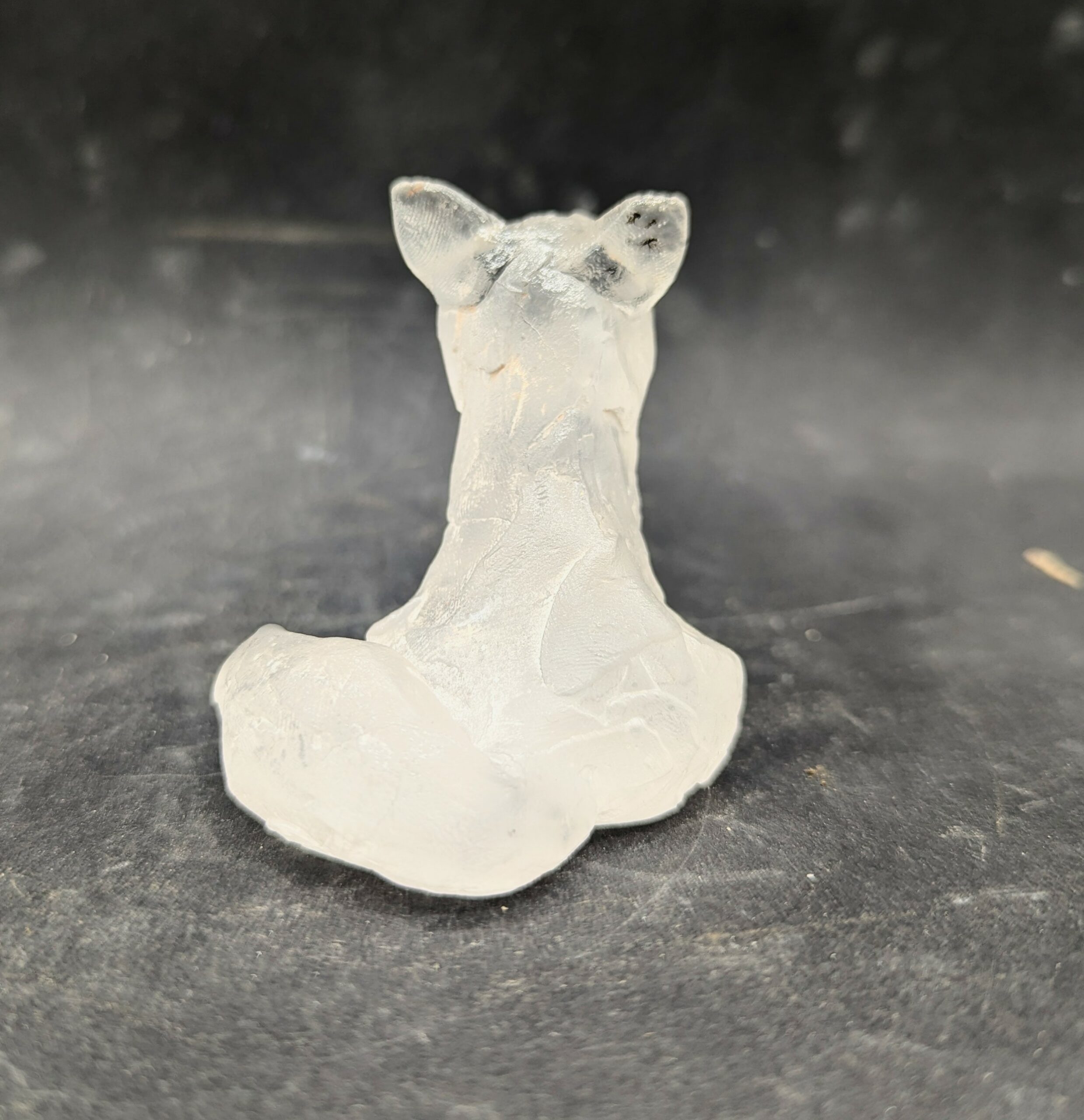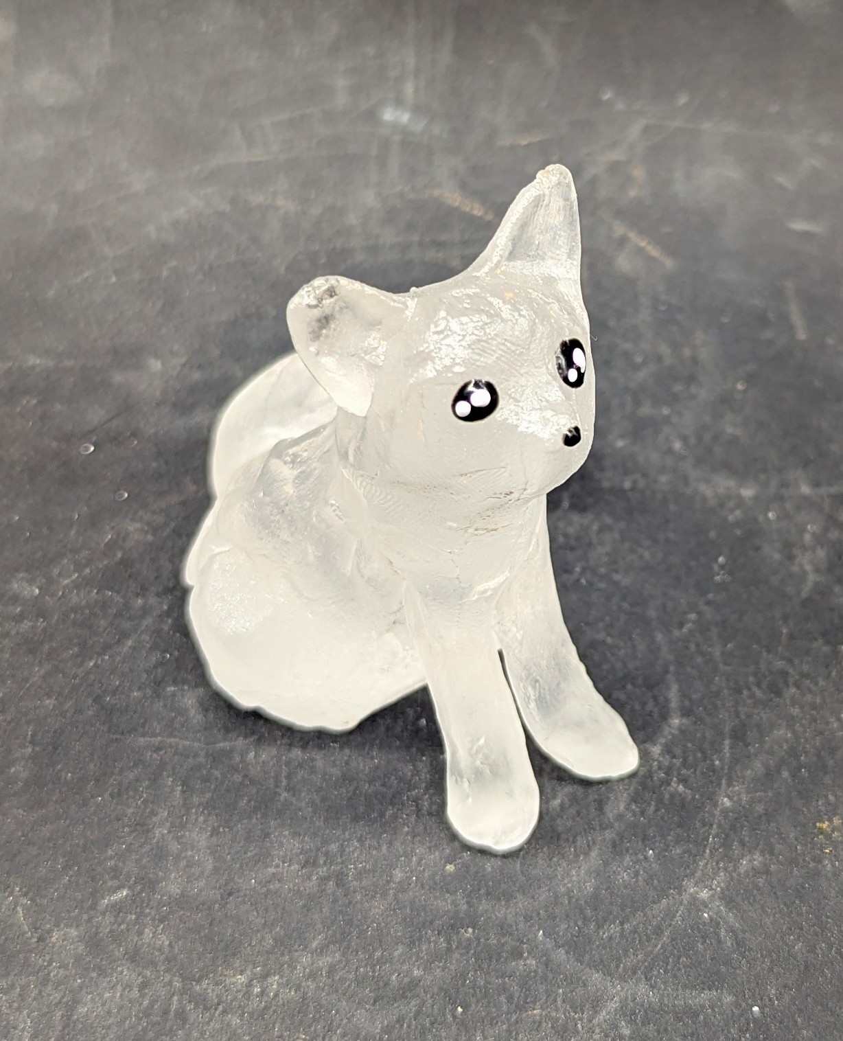 Petit chat en verre dans son milieu naturel (carton) qui saura veiller sur vos étagères.